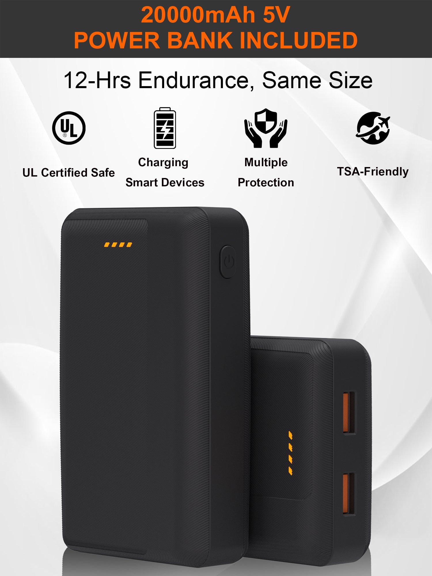 - Enjoy up to 12 hours of warmth on a single charge (5–6 hours on high, 7–8 hours on medium, 11–12 hours on low) with 20000mah Battery.