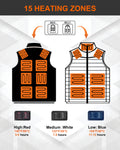 - 15 carbon fiber heating elements (left & right pockets, collar, upper back, and lumbar area) provide full-body warmth, including extra support for your lower back.