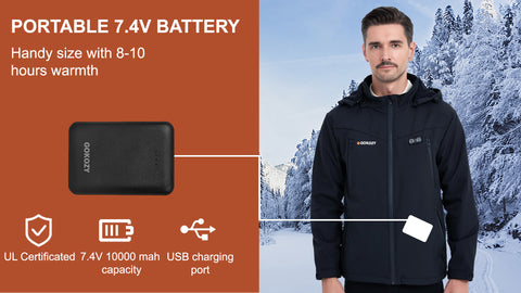 La batterie 5 000 mAh 7,4 V incluse fournit non seulement une chaleur durable, mais comporte également des protections intégrées et sert également de chargeur de téléphone.